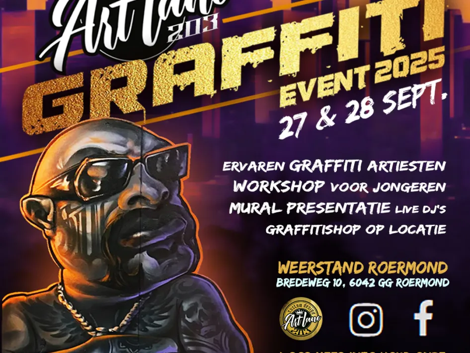 Ongeveer 100 streetart- en graffiti-artiesten uit binnen- én buitenland maken van het Weerstand-terrein een plek vol kleur en creativiteit. Elke kunstenaar brengt zijn of haar eigen stijl en verhaal – kunst op z’n puurst.Live dj’s zorgen voor een afwisselend muzikaal programma – van relaxte vibes tot stevige beats.