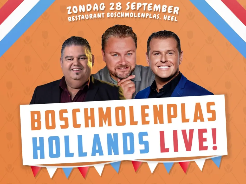 Op zondag 28 september verandert het buitenterrein van Restaurant Boschmolenplas in een muziekparadijs met de grootste Hollandse hits. Er zijn live-optredens van bekende artiesten zoals Wesley Bronkhorst, John West en Django Wagner en zing uit volle borst mee met klassiekers én platen van nu.