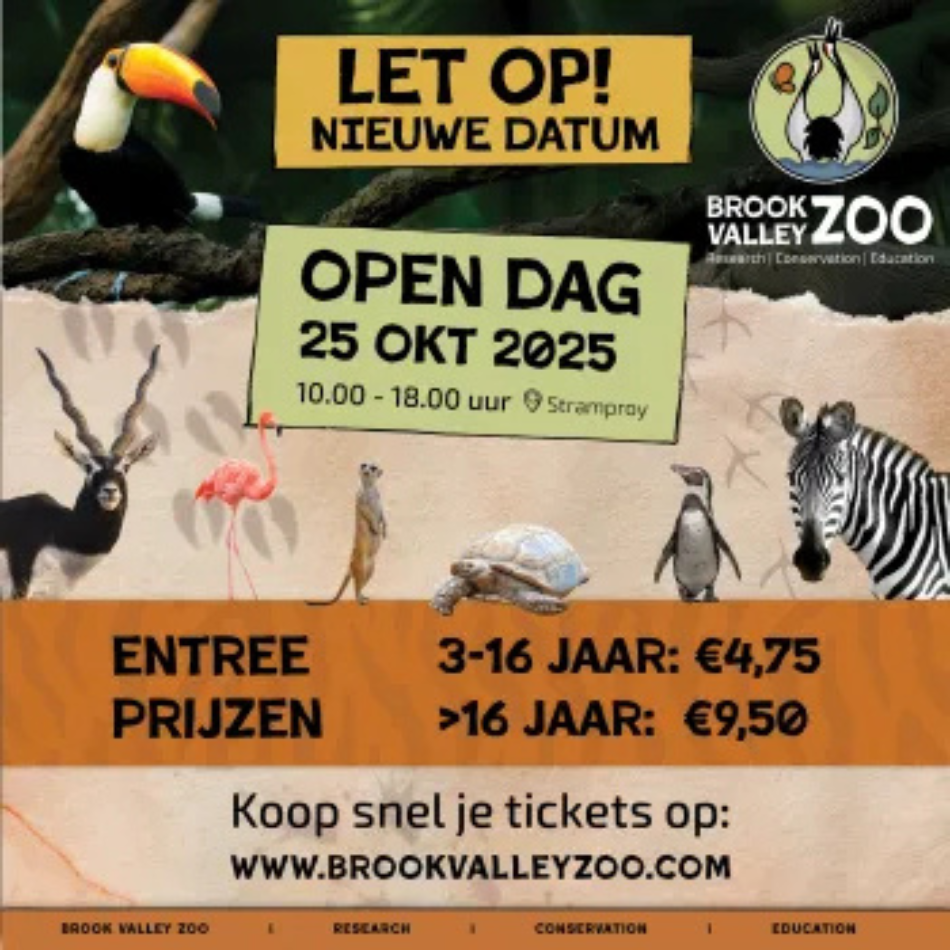 Op zaterdag 25 oktober 2025 opent Brook Valley Zoo de poorten voor een feestelijke open dag. Van 10.00 tot 18.00 uur kun je deze bijzondere privé-dierentuin bezoeken en ontdekken hoe educatie, onderzoek en conservatie hier samenkomen. Maak kennis met de dieren, ontmoet de verzorgers en laat je verrassen door activiteiten voor jong en oud.
